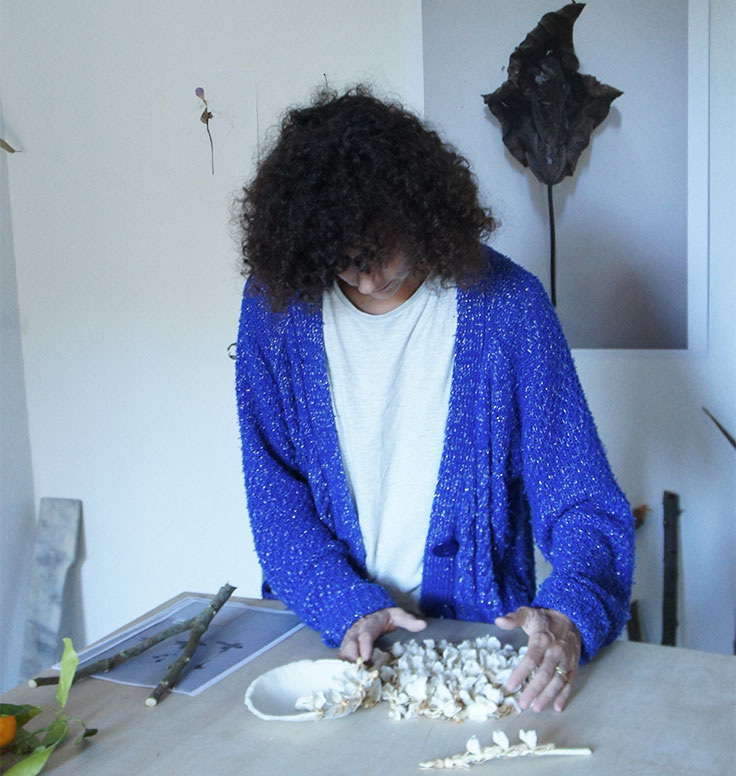 The artist’s practice is in constant dialogue with the vegetal, the mineral, the natural, the element earth; a reflection upon the question of transmission and relation towards nature and our environment. Eve Pietruschi works is currently developing, together with curator Isabelle Pellegrini, a project around wastelands, abandoned greenhouses and contemporary nature.