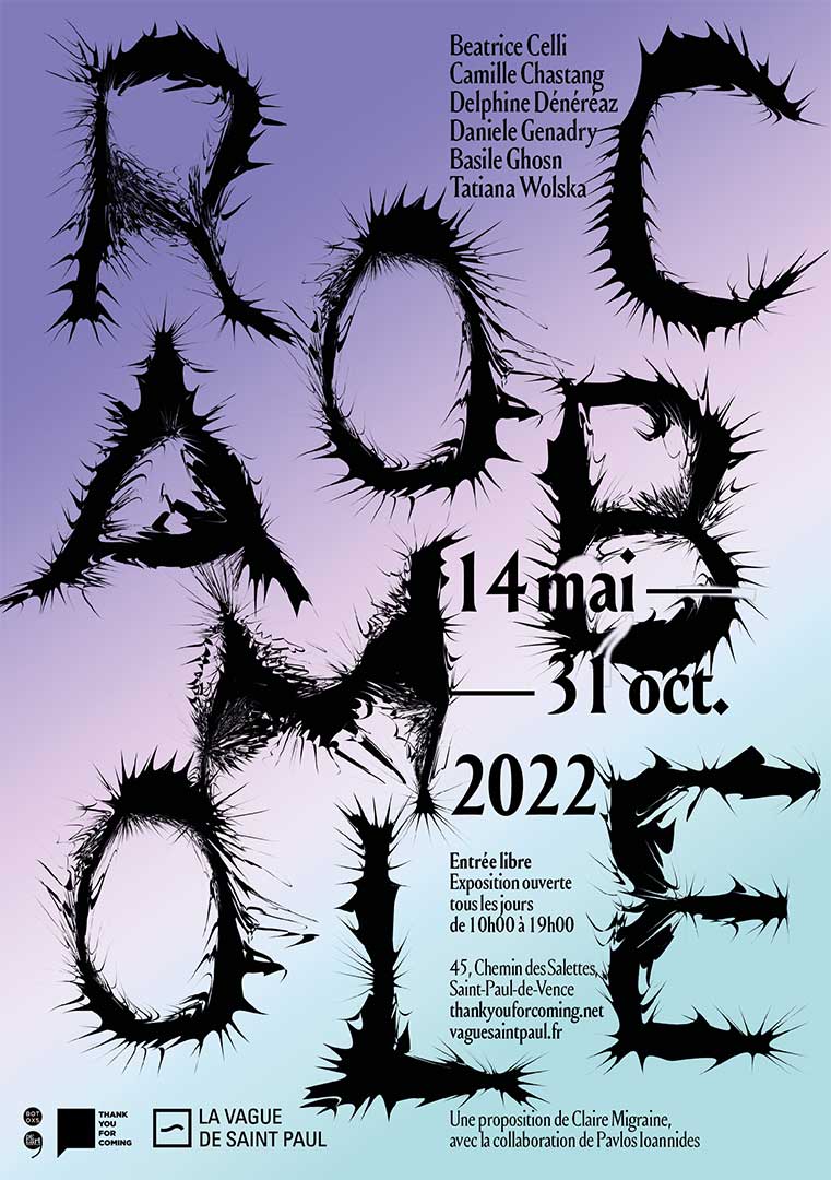ROCAMBOLE rassemble en un téléscopage évocateur les propositions de six artistes réuni·es selon un principe d’affinités électives. Les oeuvres de Beatrice CELLI, Camille CHASTANG, Delphine DENÉRÉAZ, Daniele GENADRY, Basile GHOSN et Tatiana WOLSKA se mélangent pour former de nouvelles combinaisons au sein de l’Hôtel La Vague, garant de l’hospitalité d’un espace et d’un temps partagés.